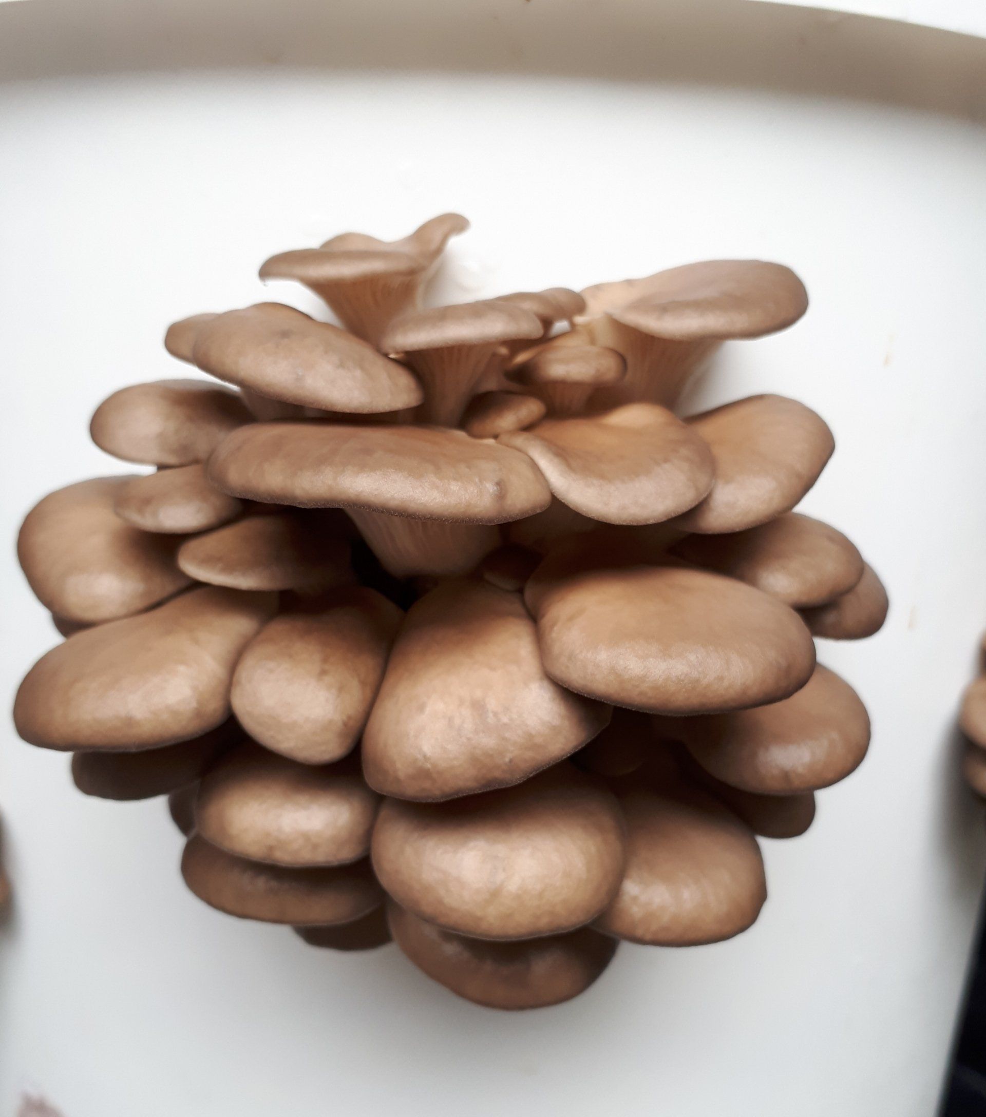 Determined to find an alternative, after much research and many months of honing my mushroom growing skills I am proud to say my gourmet mushrooms are sustainably grown in reuseable containers using local resources.